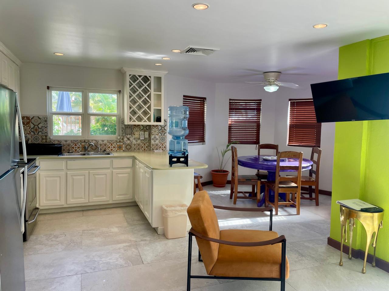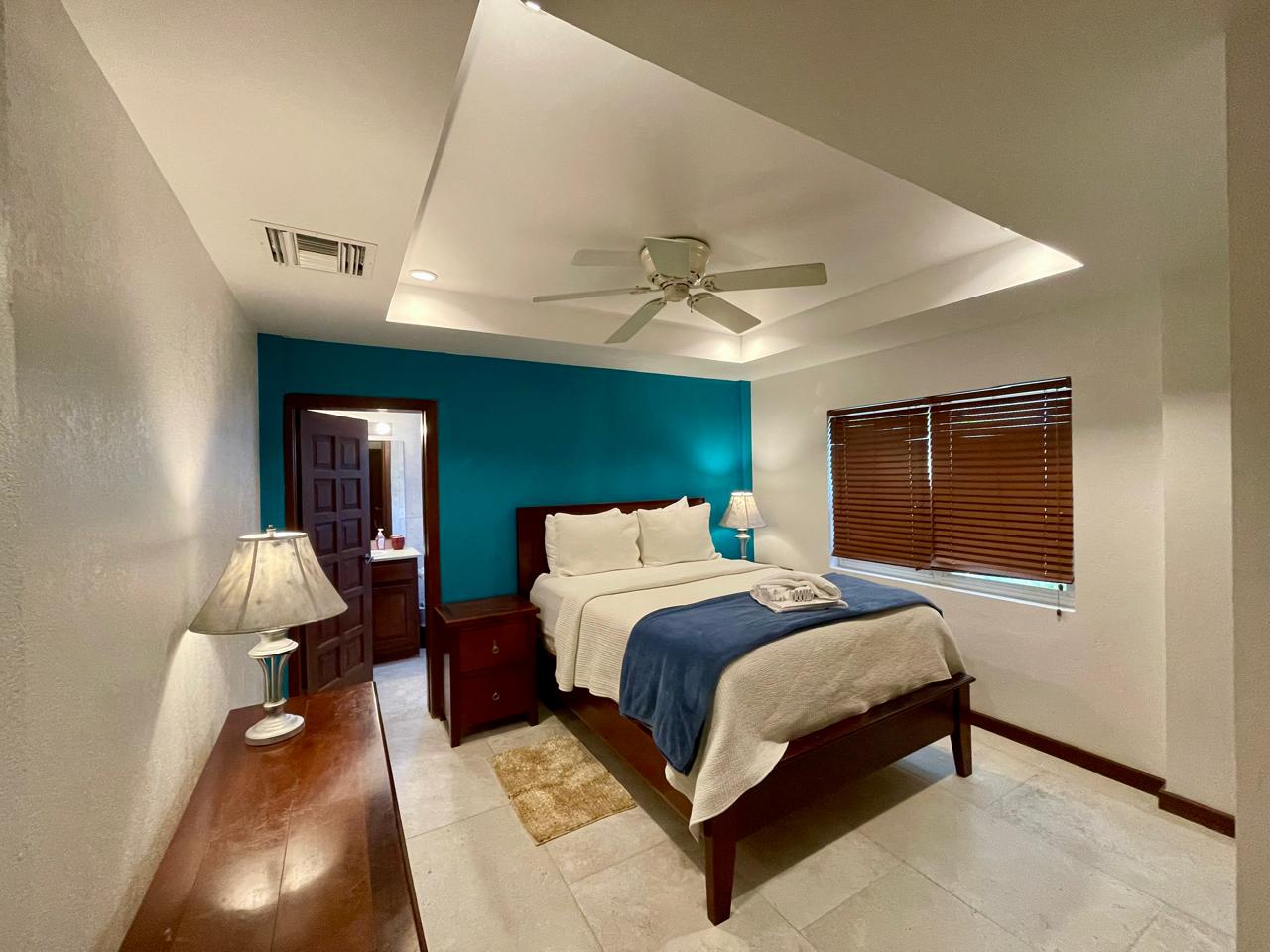 A beautiful 3 bedroom 2 bath apartment in a 3 unit house located just south of San Pedro Town in the heart of everything. AC, washer and dryer, 2 verandas, fully furnished. 1/2 block from the beach. Plenty of restaurants and shopping nearby. No pets. Utilities not included. 1 year minimum lease.