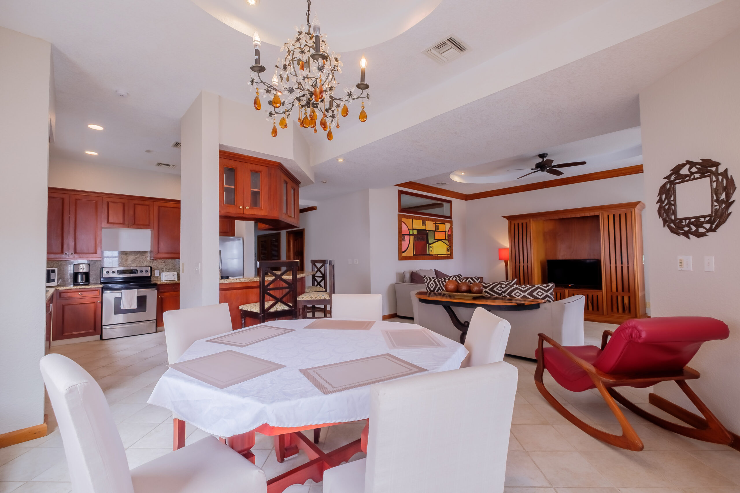 Unit #1 is a ground-floor, three-bedroom, two-bathroom beachfront home that offers direct access to the Caribbean and uninterrupted sea views. The layout is designed for practical living, with a strong connection between indoor spaces and the beachfront setting. The open-concept living and dining area leads out to a private verandah, where the view of the Caribbean is front and center. From this space, you step directly onto the beach, making the location one of the unit’s strongest features.