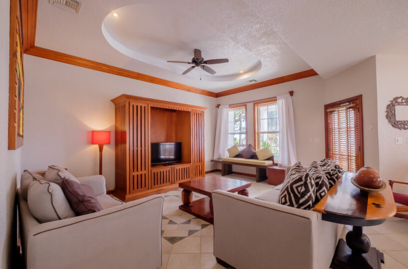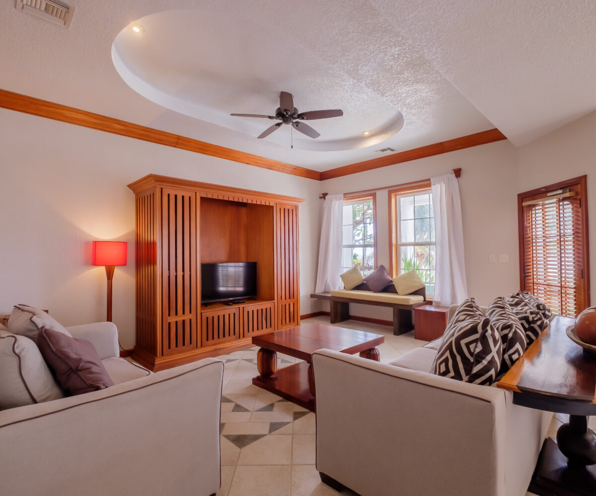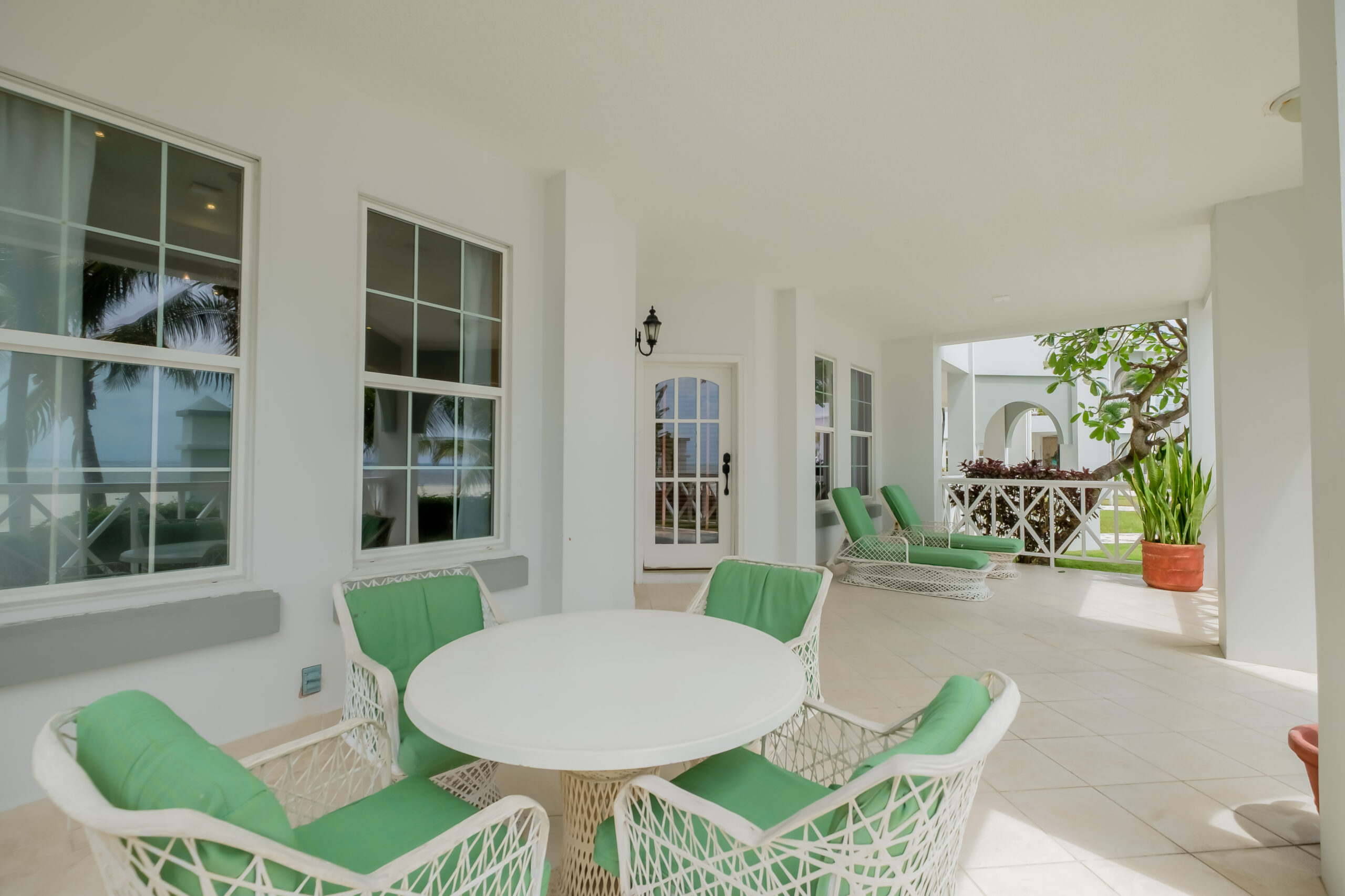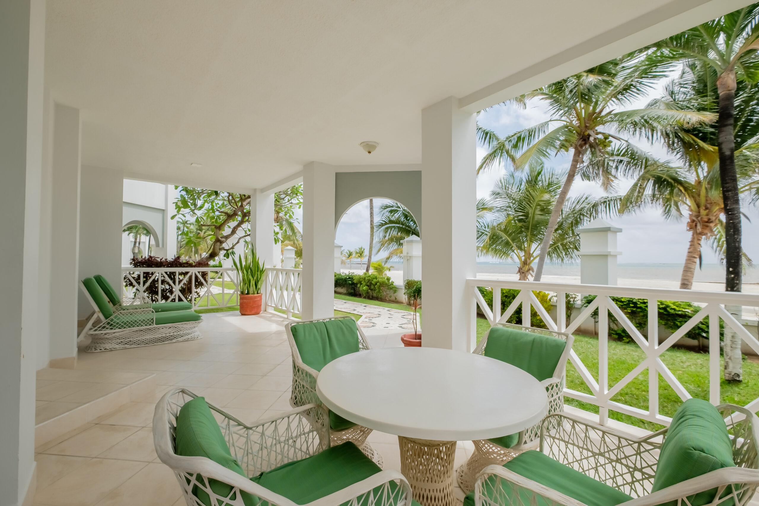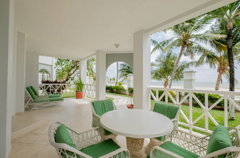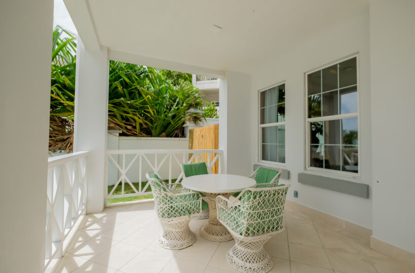 The verandah functions as an extension of the living area, offering a direct, unobstructed view of the Caribbean Sea. It’s a practical outdoor space for dining, relaxing, or simply taking in the setting. With the beach just steps away and quick access to the pools and shared amenities, Unit #1 delivers a straightforward beachfront living experience with both convenience and privacy.