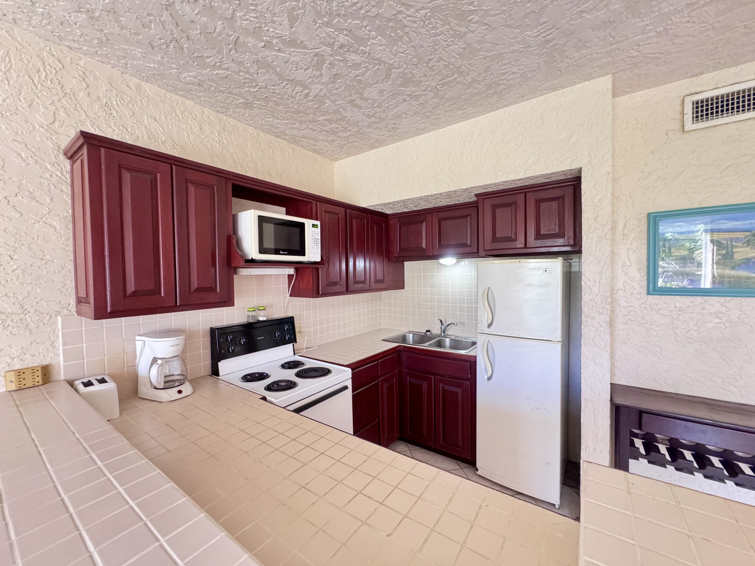 Royal Palm 10A is a spacious two-bedroom, one-bathroom retreat, strategically situated just a minute’s stroll from the beach, pool, and private dock, and nestled within the secure, gated ambiance of Royal Palm Villas. Imagine waking each morning to the soft Caribbean breeze wafting through, as you step outside to enjoy the shimmering community pool, or wander down the pier for a quiet moment by the ocean.