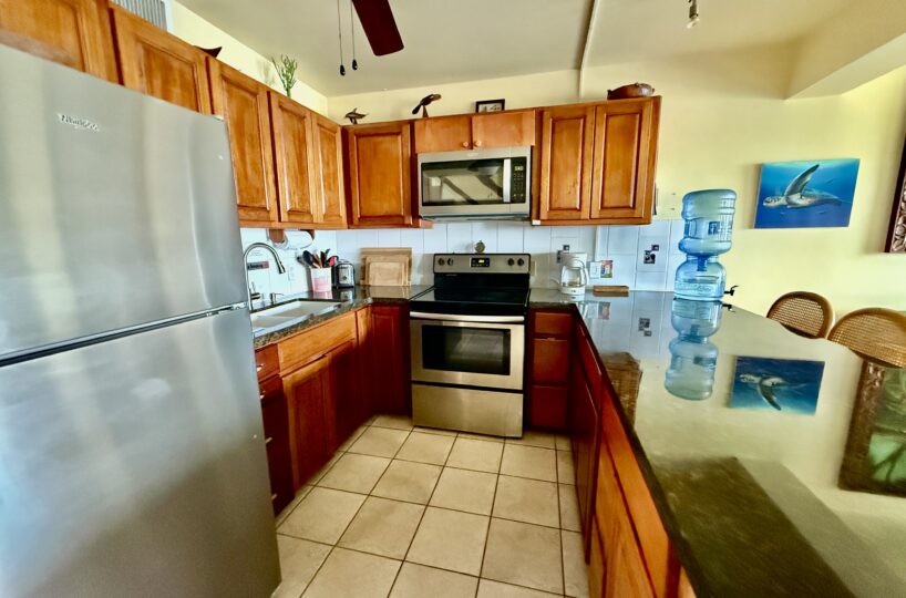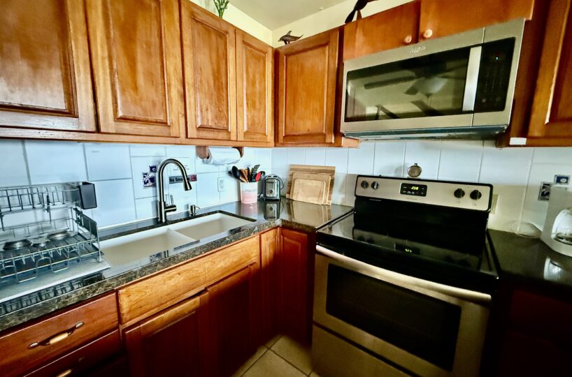 This beautifully appointed 1600 sq. ft. condo has a kitchen that includes a full fridge, stovetop, oven, microwave, coffeepot, toaster, blender, cookware and utensils. This unit has a dishwasher and its own WIFI. This unit was recently remodeled.